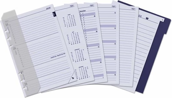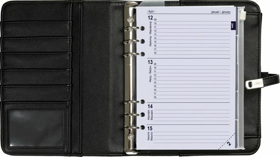 A5 maat hervulbare agenda met gratis meerjarige agendavulling met veel schrijfruimte. Met het stevige ringmechaniek is het gemakkelijk om de indeling van je agenda aan te passen aan jouw manier van werken. Je belangrijke aantekeningen kun je gewoon in je organizer laten, als je straks een nieuwe agenda-vulling toevoegt.