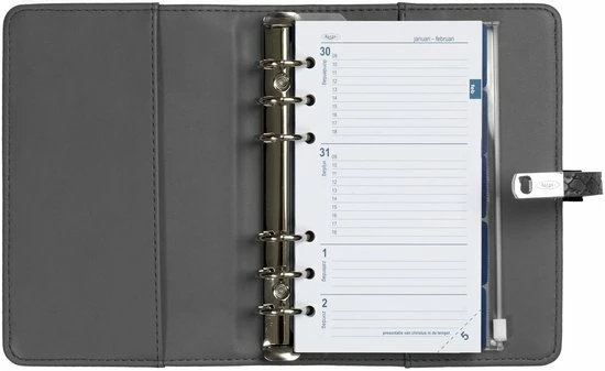 Personal hervulbare agenda meerjarige agendavulling van 1 week op 2 paginas. Met het stevige ringmechaniek is het gemakkelijk om de indeling van je agenda aan te passen aan jouw manier van werken. Je belangrijke aantekeningen kun je gewoon in je organizer laten, als je straks een nieuwe agenda-vulling toevoegt.