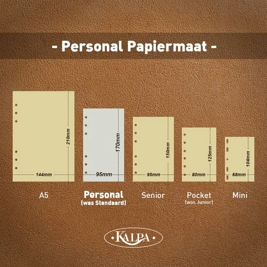 Vroeger heette deze maat agenda-organizer Standaard. Dit is vervangen door de internationale naam Personal.