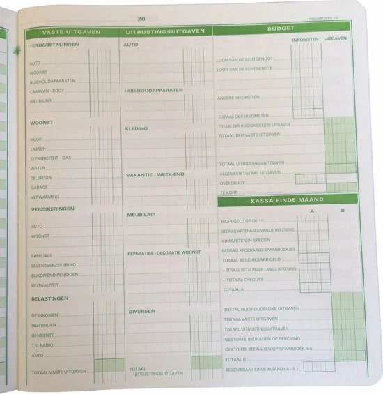 Dit handige boekje helpt u met de opvolging van de huishoudelijke ontvangsten en uitgaven.