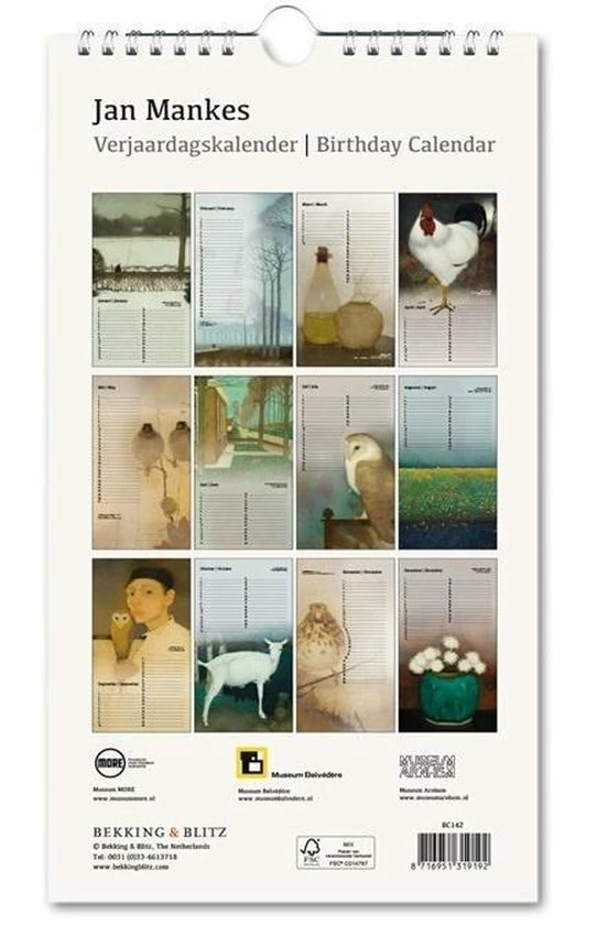 Nooit meer een verjaardag of een ander memorabel moment vergeten met onze kunstige verjaardagskalender. Bij elke maand een andere illustratie. Hang de kalender eenvoudig aan de muur met het handige ophangoog.