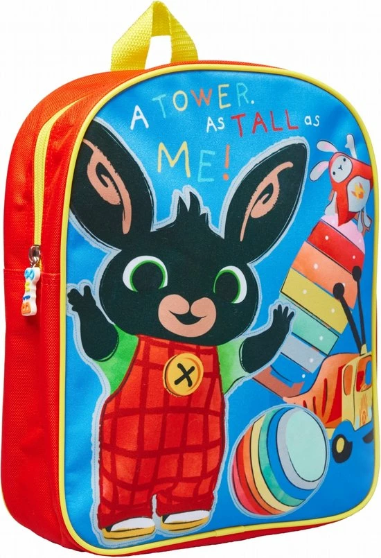 Maak kennis met Bing en zijn vriendjes! Bing is een schattig konijntje die samen met zijn vriendjes alledaagse avonturen van een peuter beleefd. Neem met deze rugzak je vriendje Bing altijd mee op pad! Deze rugzak is blauw en heeft een voorvakje en hoofdvak waar al je benodigde spulletjes in kunnen. De vakjes sluit je allebei af met een ritssluiting. De schouderbanden zijn in lengte verstelbaar voor extra comfort.Afm 32 cm hoog x 23 cm breed x 12 cm diepInhoud 6 literKleur: blauw