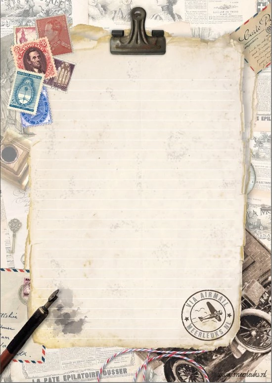 Het papier is enkelzijdig bedrukt met mooie vintage print en schrijflijntjes.