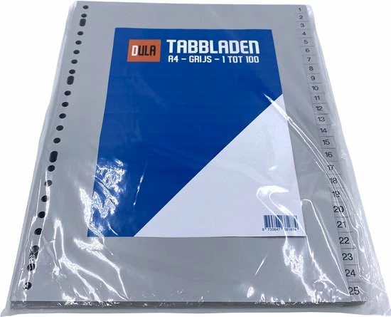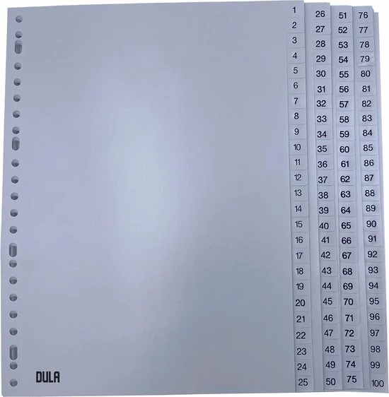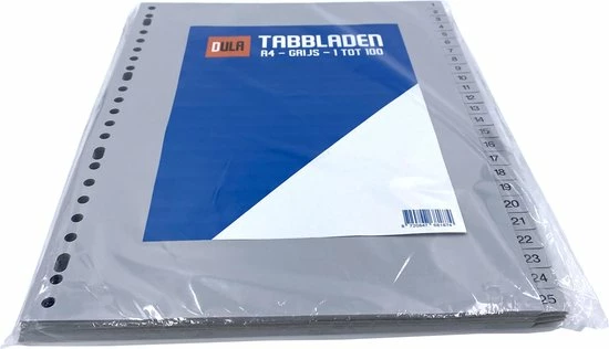 Grijze DULA Tabbladen, Perfect voor het opbergen van jouw A4 papieren van 1 tot 100.