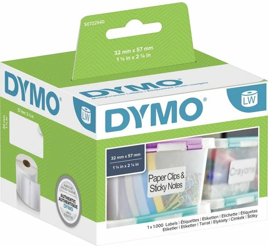 Authentieke DYMO LabelWriter-labels zijn een efficiënte en kosteneffectieve oplossing voor al uw behoeften op het gebied van post, verzenden en organiseren. Door gebruik te maken van directe thermische afdruktechnologie zonder inkt of toner, profiteert u van meer labels en minder rommelige inkt. LW-labels worden geleverd op rollen met etiketten op maat, waardoor u eenvoudig enkele of honderden etiketten kunt afdrukken zonder het gedoe van vellen, verspilling of labelstoringen. LabelWriter-labels zijn ontworpen voor DYMO 450-serie-, 4XL- en LabelWriter Wireless-labelmakers.