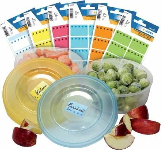 Zelfklevende diepvriesetiketten voor het kenmerken en beschrijven van diepvrieszaken.
