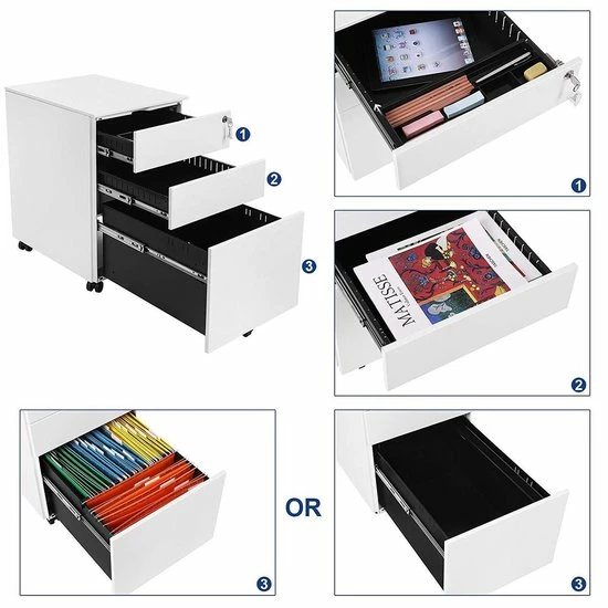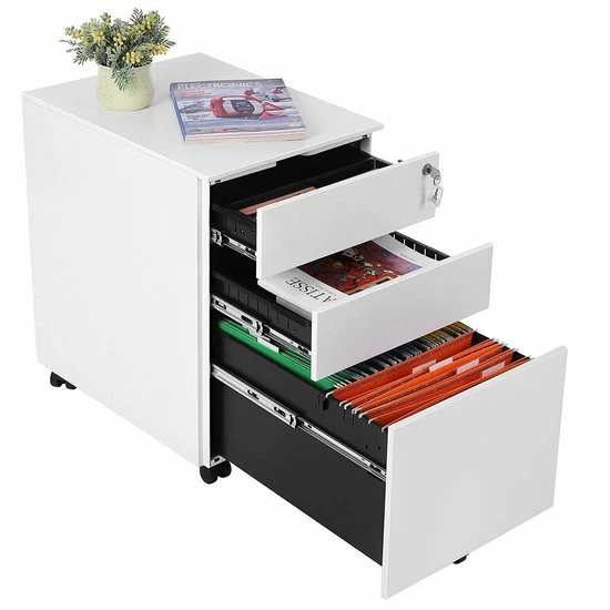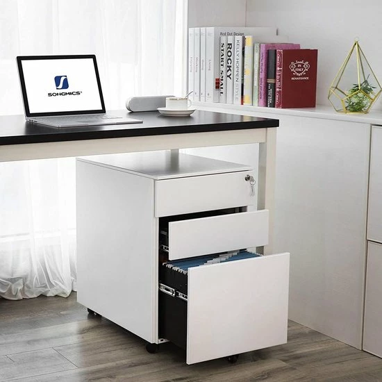 Sommige voorwerpen of documenten bewaar je graag achter slot en grendel. Dit sterke metalen ladeblok heeft 3 lades, waarvan je de bovenste lade met de meegeleverde sleutel kunt vergrendelen.