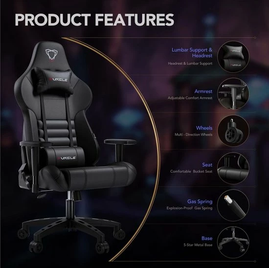 Deze Gamestoel staat zeer stevig door de aluminium wielbasis en rolt super eenvoudig door de van hoge kwaliteit zwarte rubberen wielen.