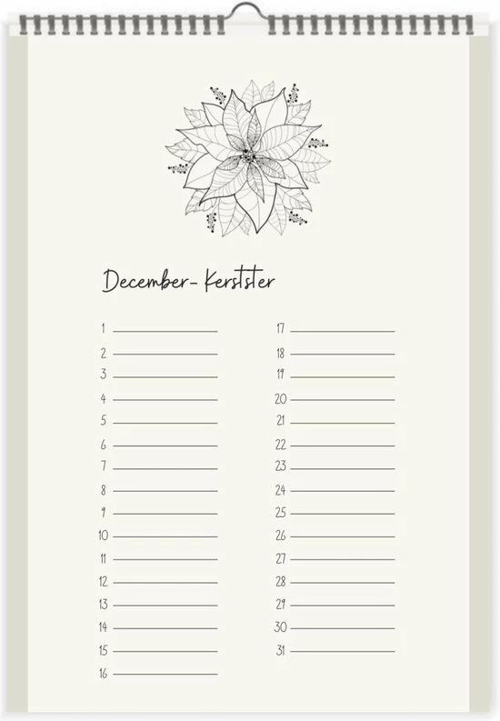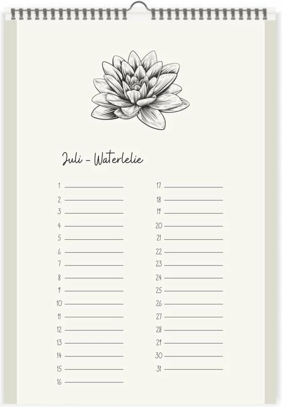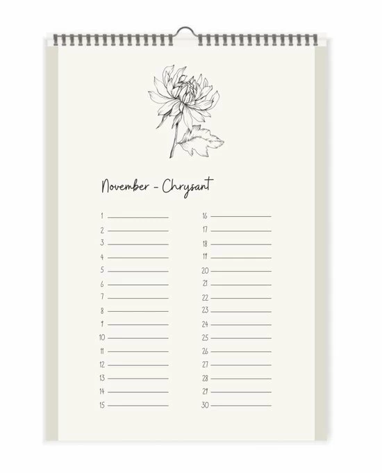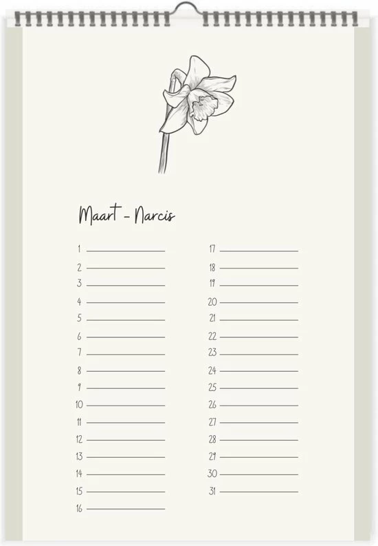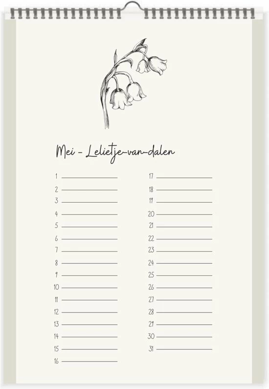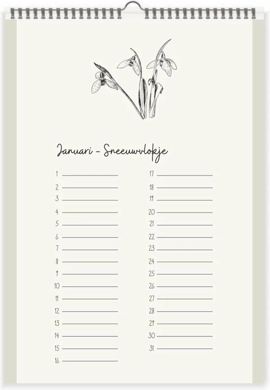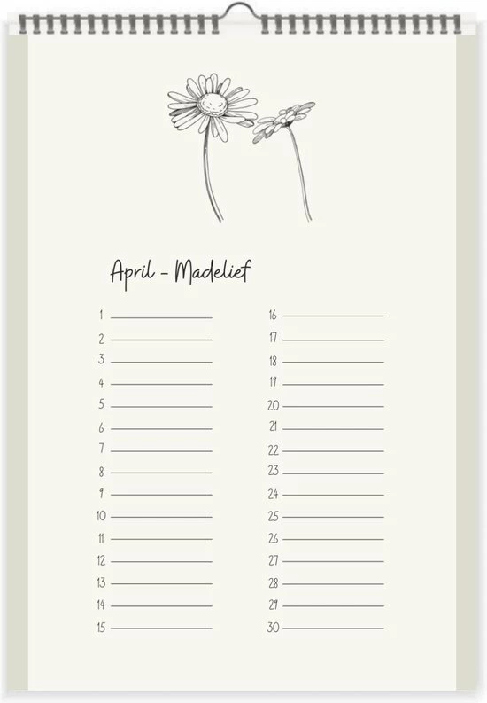 De kalender is gedrukt op a4 formaat. 29.7 x 21 cm en is door de ringband makkelijk op te hangen.