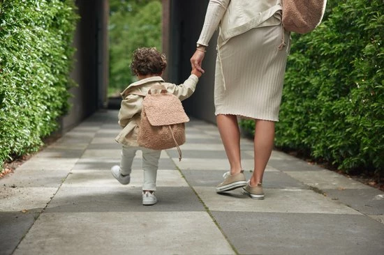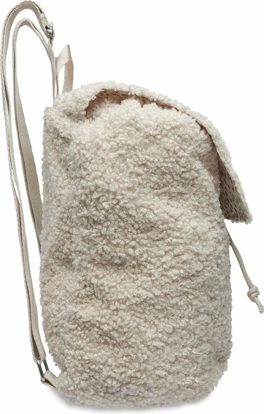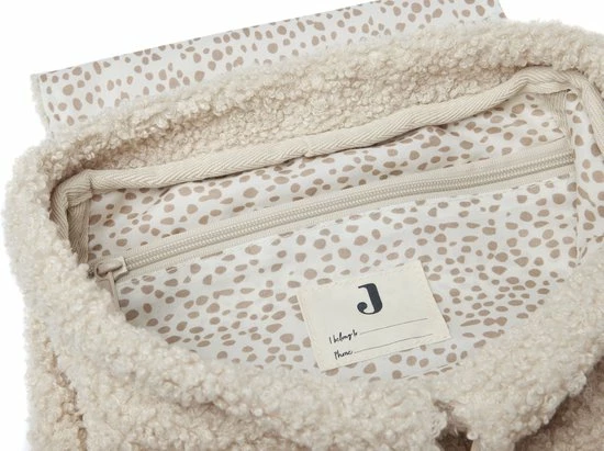 Het compacte rugtasje heeft verstelbare schouderbanden zodat hij bij elke leeftijd goed past. Ook is het tasje gemakkelijk te openen en sluiten met het verstelbare koordje. Geheime spulletjes kan jouw mini verzamelen in het kleine extra vakje met rits aan de binnenkant. Zorg dat niet iemand anders het tasje per ongeluk meeneemt, door de naam van jouw kindje in het daarbij behorende vakje te schrijven. De binnenvoering is bedrukt met leuke vlekjes en de onderkant is met foam gemaakt voor extra stevigheid. Als kers op de taart is het rugtasje ook nog eens om te knuffelen door de zachte Teddy uit het Boucle thema. De afmetingen van het rugtasje zijn H24 x B22 x D13 cm.