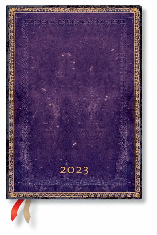 Deze agenda voor 2023 in Engelse uitvoering heeft een harde kaft met een glimmend vintage dessin. De agenda loopt van 1 januari t/m 31 december 2023.