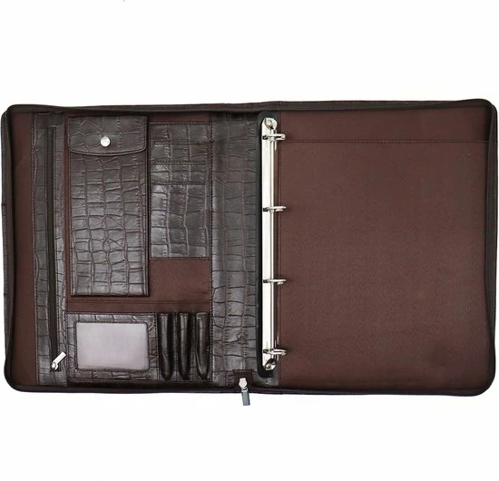 Schrijfmap met uitneembare ringband is vervaardigd uit 100% echt leder