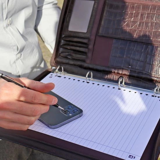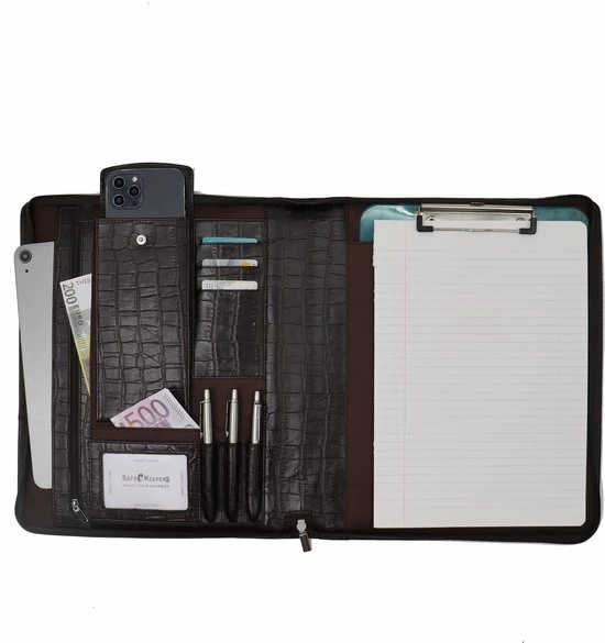 De schrijfmap van Safekeepers wordt geleverd in hoge kwaliteit leer. De schrijfmap is afgewerkt met soepele rits en biedt ruimte voor vele accessoires. Slim & smart design om al uw spullen veilig opgeborgen voor werk mee te nemen. ”