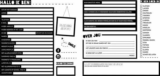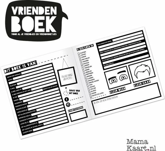 Laat al jouw vriendjes en vriendinnetjes twee pagina’s invullen met allerlei leuke vragen over jou en over jullie vriendschap! Leuk om terug te lezen als je groot bent!