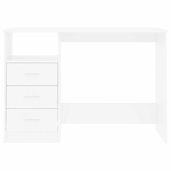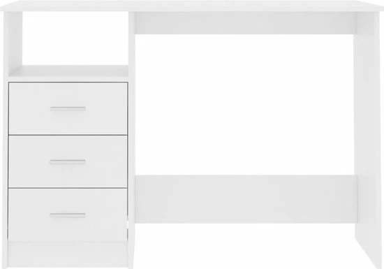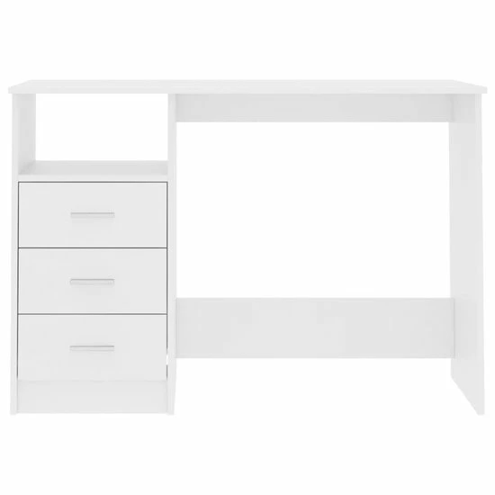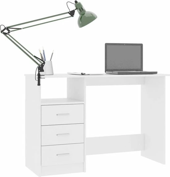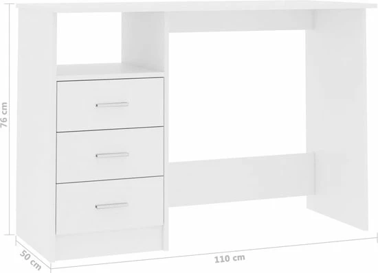 Dit computerbureau is gemaakt van hoogwaardig spaanplaat en is zeer stevig en duurzaam. Ons bureau is perfect voor kleinere kantoren, slaapzalen, kleine ruimtes, enz. Het heeft 3 lades en een open vak aan de zijkant waardoor het voldoende ruimte biedt om je studeerspullen, zoals boeken en mappen, op te bergen en binnen handbereik te houden. Daarnaast is het bureau eenvoudig schoon te maken met een vochtige doek.
